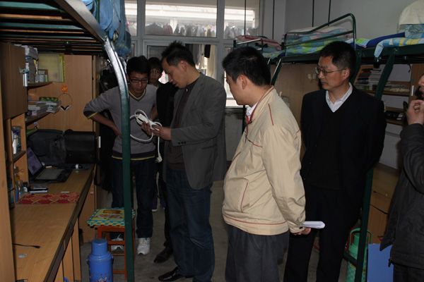 王振其、丁景良仔细查看宿舍安全卫生状况,详细询问学生宿舍生活学习情况,要求大家严格遵守省教育厅“六个严禁”,切实提高安全防范意识,自觉维护文明整洁的公寓环境。在肯定安全卫生良好态势的同时,也对个别较差宿舍进行了批评教育。