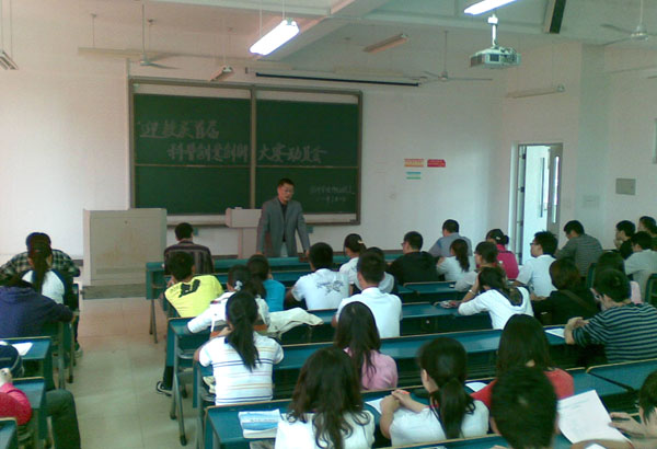 王振其作了动员讲话,他说,由省科协、省教育厅、团省委主办的“安徽省百所高校百万大学生科普创意创新大赛”将于今年10-11月举办。学校极为重视此项活动,已经做了充分的组织发动。我们学院要把它作为践行应用型创新创业人才培养方案的抓手,与当前“迎校庆、做贡献、添光彩”主题活动结合起来,把此项活动作为学院学生品牌活动来开展,做大做强,做出效果。他强调与会干部要充分动员宣传,把策划力度、参与人数、活动效果、宣传力度作为检验我们学生干部胜任工作、干好工作的标尺。团总支学生会组织要细致,做好评比,充分展示我们学生在创意创新方面的成果,展现广大同学开展科技普及的能力。