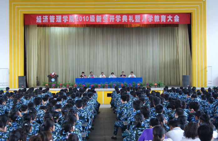 鲍步云致欢迎辞,他代表学院全体师生员工对2010级新生的到来表示最真诚的祝福和最热烈的欢迎,同时介绍了经济管理学院发展历程,从学习环境、培养目标和学习方法等三个方面作了详细介绍,并提出了殷切的希望和要求。鲍步云的讲话鼓舞人心,赢得了阵阵掌声。