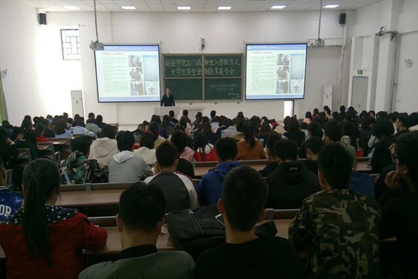 胡老师从安全是成就人生的基石这一主题切入,紧紧围绕大学新生将会面临的成才、就业、交友与安全之间的关系等四大方面,重点结合“七防范,七关注”,通过大量发生在大学生身边的一个个案例、一件件事件、一幕幕场景,对参会师生进行国家安全、消防安全、交通安全、财产安全、人身安全、心理安全、日常安全等方面的安全法制教育。报告中,针对大学新生学习生活等方面的诸多注意事项、隐患排查和安全防范,胡老师从总体策略、防微杜渐、防患未然、未雨绸缪等几个方面为与会师生加强安全防范工作提供了有效的防范策略。