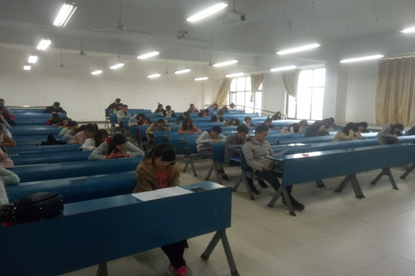 此次竞赛为个人赛,采取闭卷笔试的形式进行,分为单选题、判断题、多选题和简答题。考题密切结合大学生在学校生活中可能遇到的问题和情景,内容涉及基础心理学、社会心理学、发展心理学及心理咨询技能等方面。赛前,通过各班级心理委员广泛宣传,组织班级同学认真学习心理健康知识、咨询程序等;赛场上,各班级同学认真思考、专心作答,考场秩序井然有序。