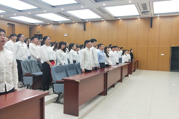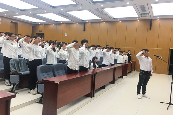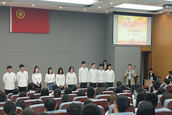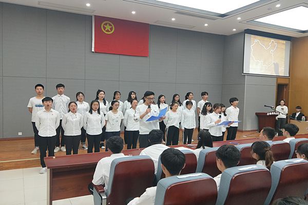 学院易班工作站站长马腾飞带领与会团员进行入团宣誓。先进团支部代表金融工程183团支部齐声朗诵《少年中国说》,为祖国而骄傲自豪的情怀、献身革命事业的光荣使命感令人激情满怀,与会团员青年自发而起,加入到朗诵中去。最后,在朝气蓬勃、雄浑嘹亮的团歌声中,本次主题团日活动圆满落幕。