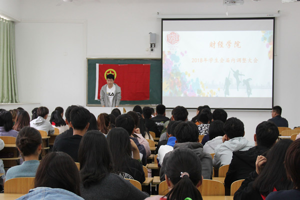 10月20日下午,财经学院在致知楼A108召开学生会届内调整大会暨学生干部培训会。学院党总支副书记张传德出席会议。院学生会全体成员参加了会议。会议由分团委书记、学生会秘书长薛枫主持。