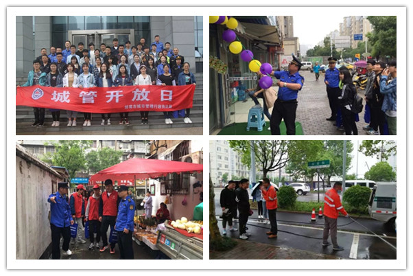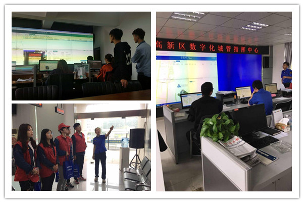 此次活动共分6组,在蚌埠市城市管理行政执法局各区执法队队员的带领下,分别深入淮上区、高新区、禹会区、蚌山区的重点路段,切身感受一线执法工作,了解城市管理具体的工作模式和操作流程。活动中,同学们参与了占道经营、违规户外广告、违章停车、出店经营等不文明现象的整治,向沿街经营户发放城市管理相关宣传资料;参观了数字化城管指挥中心,感受数字城管信息系统的运行模式、案件派发、处置过程;了解了片区的垃圾污水处理、饭店聚集地煤改气工程推进等工作以及淮河治理成果;观摩学习了防扬尘防渣土车作业方法和S16车、高压水枪车工作原理。