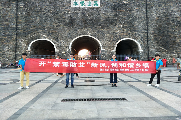 为进一步提高青年大学生、广大人民群众对毒品、艾滋病危害的认识,增强自我防范能力,8月23日-27日,财经学院大学生暑期“三下乡”青春博爱实践团在凤阳县府城镇开展了为期五天的“开‘禁毒防艾’新风,创和谐乡镇”志愿服务宣传活动。