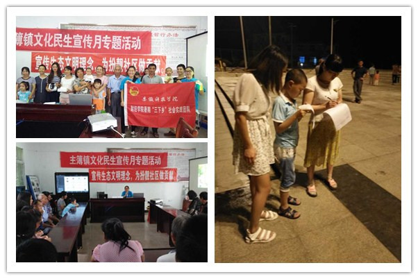 8月26日—30日,安徽科技学院财经学院“三下乡”暑期社会实践“梦之队”一行三人,在安庆市岳西县主簿镇开展以“宣传生态文明理念,与绿色重建和谐,与健康重修旧好”为主题的环保知识宣传活动。