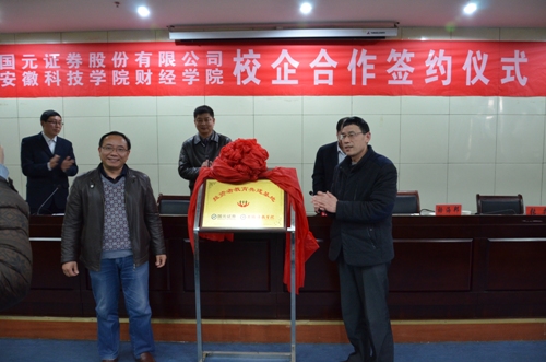3月16日下午,我院与国元证券股份有限公司校企合作签约仪式在会议中心第一报告厅隆重举行。校党委委员、教务处处长、我院院长郭亮,国元证券综合管理部总经理刘峰,国元证券凤阳分公司总经理武岳山,我院党总支书记骆海邦等出席会议。我院金融工程系负责人及金融工程专业部分学生参加会议。会议由财经学院院长助理金怀玉主持。