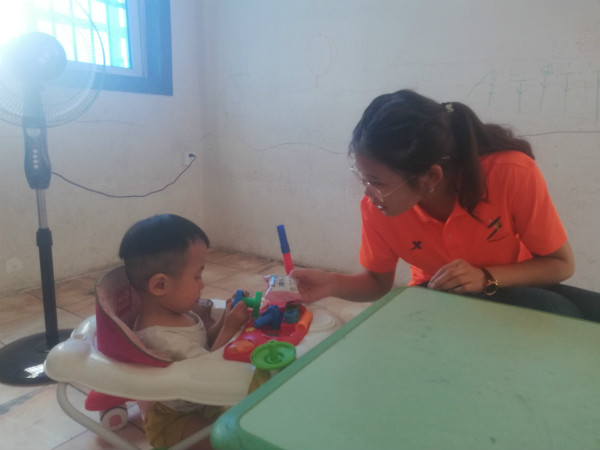 6月30日,在与康复中心的老师进行短暂交流之后,关爱团的队员们见到了部分刚上课结束,需要进行康复治疗的孩子们。经过一段时间的接触之后,孩子们已经能够很好地适应来访人员,并可以同队员们进行简短的肢体和语言交流。在往后的时间里,队员们与孩子们成功建立起较为亲密的关系,同孩子们一起做游戏,学唱歌,作绘画,还帮助老师和家长对孩子进行简单的语言诱导,鼓励他们进行语言发音,并实施相应的奖励,以此激发他们的康复治疗。除此之外,成员们还向家长们询问了孩子的具体情况,并向康复院中心了解孩子们康复治疗的相关事宜,并决心在后续的活动中继续为孩子们的康复奉献力量。