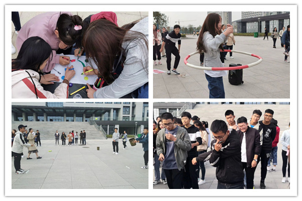 拓展活动由“我的团队我做主”“圈圈圆圆”“你划我猜”“快乐接力赛”“数字大爆炸”等五个创意项目构成。在活动的过程中,每队成员积极配合、齐心协力完成挑战,表现了积极、阳光、向上的品质和精神,其中穿插着参与者的交流分享,同学们受益匪浅。整场活动持续近两个小时,同学们在各种需要团队合作的游戏和挑战中学会相互支持、感受信任与责任、激发自我潜能、树立健康心态。