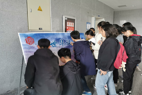在“我为祖国送祝福”环节中,团员青年们纷纷在“奋进新时代”签名墙上郑重签名,许下对伟大祖国的深情祝福,礼赞新中国70年的峥嵘岁月。