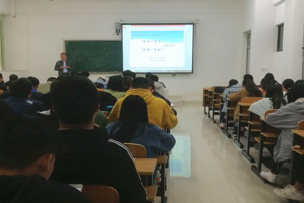 张传德首先深刻阐述了学校层面经长期积淀、针对不同年级坚持开展的“诚信•文明”“责任•成才”“感恩•奉献”三大主题教育,以及贯穿大学四年的“安全•守纪”主题教育的目的、意义、目标、举措及有效载体。结合高年级学生特点与成长规律,张传德紧紧围绕“责任•成才”“感恩•奉献”两大主题,从新时代大学生的时代要求、理想信念、家国情怀、历史责任等四大方面,以及高年级学生的个人学业、职业规划和知识能力储备等方面切入,结合学生身边的励志典型、优秀校友、时代楷模等娓娓道来,让学生深受教育与启迪。