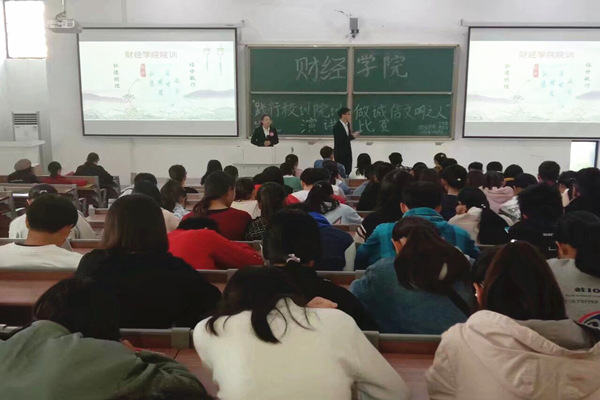 为增强广大学生对学校校训、学院院训地理解和认同,财经学院于11月16日上午在致知楼A111举办了“践行校训院训 争做诚信文明大学生”主题演讲比赛。校青年志愿者协会会长夏校志,校大学生宣传中心编辑部部长陈夏娟,校阳光心灵社副会长孟利,院学生会副主席孙婷、副主席汪必富担任此次比赛评委。