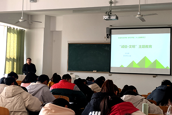 辅导报告紧扣诚信文明主题,采用弘扬诚信文明典型事迹、分享诚信文明故事、播放诚信文明教育视频等形式,并结合学校关于建立学生诚信教育档案的通知等文件精神,对学生学习诚信、经济诚信、生活诚信、资助诚信、网络诚信、就业诚信等六个方面进行教育引导,使同学们进一步明确了诚信文明的深刻内涵,深刻理解诚信文明对自身发展和为人处世的重要性,以及失信行为不文明行为所带来的严重后果。最后,才治军强调诚信是立人成事之本,文明是中华民族优良传统美德,诚信文明是中华民族最崇尚的优良品质,也是中华儿女修身立德、为人处事的基本原则。要求学生在今后的学习、生活和工作中牢固树立诚信文明意识,始终坚守和积极践行诚实文明。