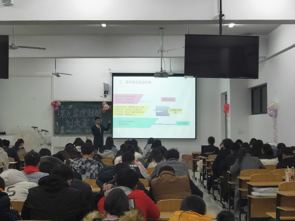 赛事主持人首先详细介绍了本次赛事的办赛初衷、目的意义及比赛规则。参赛选手通过PPT讲解对家庭、企业和个人现阶段及未来的理财规划。精彩的语言加上精美的图片使得比赛即刻吸引了同学们的眼球,枯燥难懂的专业知识变得生动有趣。随后进行的知识问答也大大开拓了同学们的眼界。经过激烈的角逐和评委们客观公正地评分,来自财管191班的队伍获得本次比赛的一等奖。