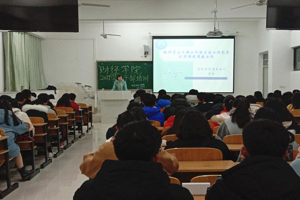 为进一步提高学生干部综合素质、工作水平和业务能力,12月6日晚,财经学院在致知楼C108开展主题为“提升学生干部工作能力与工作艺术 扎实推进团建工作”的学生干部培训。培训由学院分团委书记薛枫主讲。学院2019级全体班级干部及院各学生组织主要学生干部参加培训。