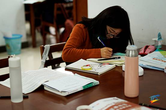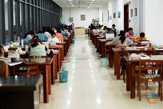 阅览室里,每个人的桌子上的书堆成高高一摞,他们在这书山后埋头苦干、奋笔疾书。这里,没有喧哗吵闹,只有轻浅的呼吸声、只有笔尖与书页交错的沙沙声、只有心中渴望知识的呐喊。