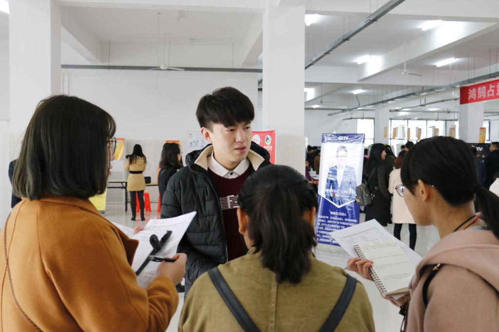 人头攒动的招聘会现场,每个人都有着自己的需求和目标,他们带着疑惑和期盼来到此次招聘会,积极主动地与企业代表交流以便获知更多的信息,来自外国语学院英语专业的应届毕业生朱雅丽便是如此。