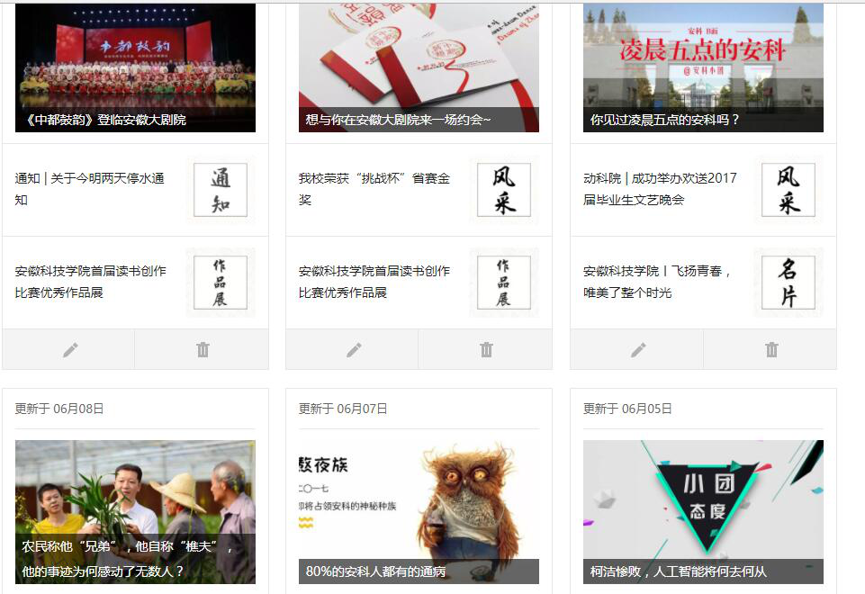 打造安徽科技学院QQ公众号,粉丝量达14500余人,发送图文推送375篇,单篇最高阅读量11000+,2016年获得全国优秀QQ公众号奖项。