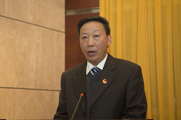 大会主席团团长、校团委书记候选人黄立义致开幕词