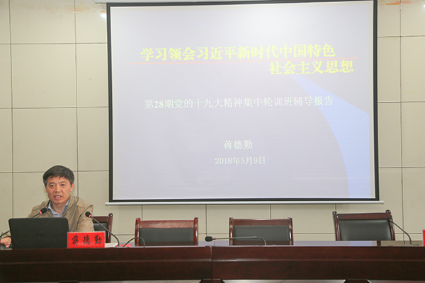 蒋德勤以“学习领会习近平新时代中国特色社会主义思想”为题,从中国特色社会主义进入了新时代、马克思主义中国化的最新成果、新思想解决社会主要问题的基本方略、新思想提出的新任务和新思想的历史地位等五个方面,对党的十九大报告进行了全面系统、精准深刻的解读。整场报告理论联系实际,以大量生动的事例、数据和资料为支撑,内容丰富、思想性强、信息量大,报告重点突出,分析论述深刻,具有很强的政治性、思想性、针对性和指导性,使全体学员对习近平新时代中国特色社会主义思想的精髓要义有了更加清醒的认识,对全面理解和系统把握习近平新时代中国特色社会主义思想的理论体系、基本内容、科学内涵和时代要求具有很好的指导作用。学员普遍反映深受教育、收获很大。