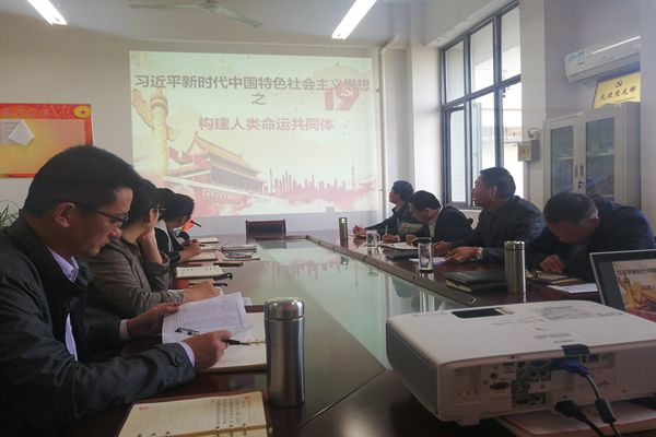 在党课之前,学院直属党支部还根据学习计划,组织教职工党员开展了政治理论学习研讨。学院理论课教师王玉平副教授和侯保龙博士作为重点发言人,分别以《习近平新时代中国特色社会主义思想之构建人类命运共同体》和《习近平新时代中国特色社会主义思想》为题进行了重点发言,其他与会同志也积极参与讨论。李森林还就全国组织工作会议主要精神进行了解读。