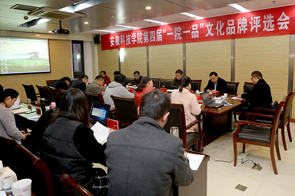 11月7日下午,我校在新图书馆会议中心一楼第二会议室召开安徽科技学院第四届“一院一品”文化品牌评选会。评选会由党委宣传部承办,评委由14个学院、宣传部、学工部、网络与信息技术中心、团委等单位各推选1人组成。纪委办、监察处派专人全程监督评选活动并当场宣布评选结果。
