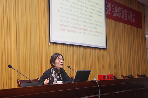 蒋德勤在开幕式上致辞,他简要介绍了我校的办学历史和办学成就,指出,今年在省人社厅的关心支持下,我校获批设立“安徽省博士后科研工作站”,为我校深入开展科技创新乃至硕士学位授予单位创建工作搭建了优质的平台,奠定了良好的基础。他强调,我校一直高度重视校园体育文化建设,群众性体育活动丰富多彩,竞技体育水平不断提高,在各类比赛中取得骄人战绩,学校影响力进一步提升。本次博士后管理工作培训班和博士后羽毛球联谊赛在我校举行,这既是一次经验交流、“羽”乐共享的聚会,同时也是我校向全省各博士后设站单位以及各位博士后研究人员和管理人员学习经验的一次良机,希望各位领导和专家倾囊相授,对我校的各项工作给予指导和帮助。