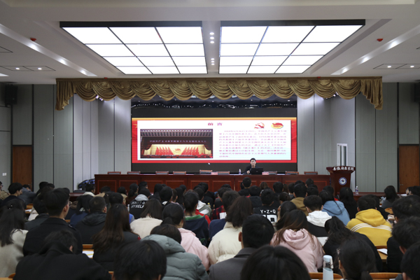 报告中,卢志龙结合学习体会宣讲习近平总书记“7.2”重要讲话精神。他从大会概况、中央领导致词的主要精神、团十八大报告的主要内容和《中国共产主义青年团章程》的修改等四个方面对团的十八大会议精神进行了全面解读。卢志龙的报告讲理论、谈感悟、教方法,结合自己多年来在农村基层一线和人民群众打交道的真实事例和丰富阅历,勉励大家珍惜在校时光,认真学习,努力拼搏,做新时代的青年马克思主义者,在时代的历史际遇中建功立业。