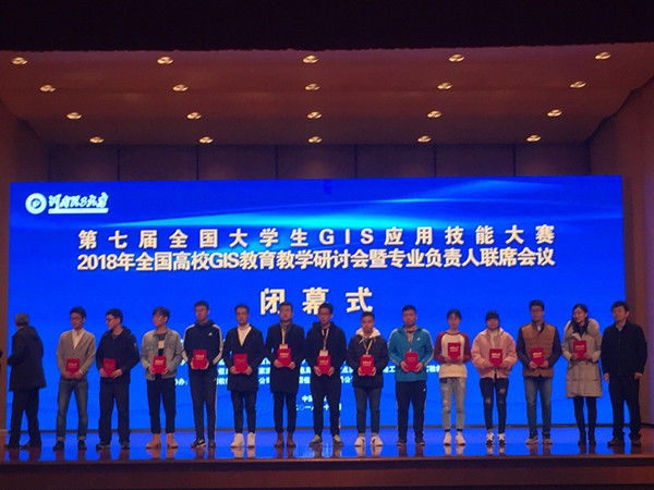 12月1至2日,由中国地理信息产业协会、中国地理协会、教育部地理科学类教学指导委员会、南京师范大学主办,地理信息产业协会教育与科普工作委员会、河南理工大学承办的第七届全国大学生GIS应用技能大赛、2018年全国高校GIS教育教学研讨会暨专业负责人联席会议在河南理工大学举行。共有来自全国29个省份和直辖市的120所高校的125支参赛队伍、497名参赛学生、200名指导教师参加比赛;有来自全国136所高校的200余名专家学者出席了2018全国GIS教育教学研讨会暨专业负责人联席会议。