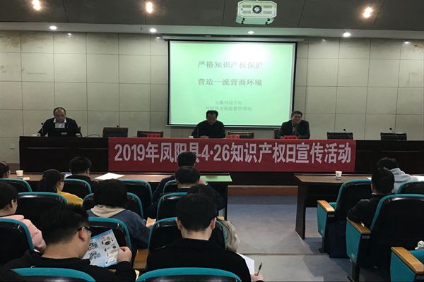 4月26日,在第19个“世界知识产权日”来临之际,我校与凤阳县市场监督管理局联合开展的知识产权宣讲活动在会议中心第一报告厅举行。凤阳县市场监督管理局局长李俊松、主任朱厚斌、科研处副处长鲍方印出席活动。报告会由鲍方印主持。