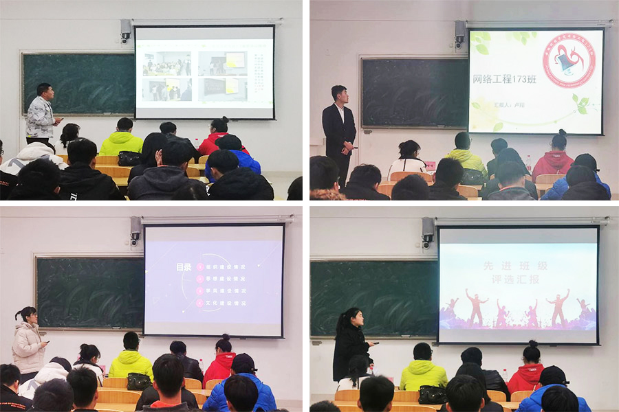 为加强学生先进班集体建设,充分发挥先进典型的示范带头作用,进一步促进学院学风建设。11月27日晚,信息与网络工程学院于致知楼C307举办先进班集体评选大赛。信息与网络工程学院专职辅导员王培培、陈凯、李军成、丁阿敏出席并担任本次比赛评委。经过初步筛选后的八个班集体参加本次评比,学院2018级和2019级各班班长、团支书共同观看了比赛。比赛由张帅主持。
