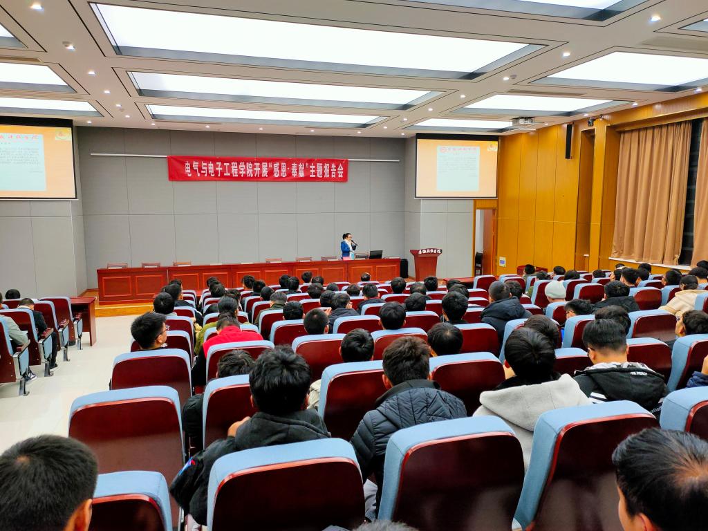 为增强学院学生的“感恩和奉献”意识,同时引导学生树立正确的价值观。12月1日晚,电气与电子工程学院于龙湖校区敏行楼B报告厅举办了“感恩 奉献”主题报告会。该院党总支副书记尚磊、辅导员宋志华和18、19级同学参加了此次报告会。此次报告会由宋志华主讲。