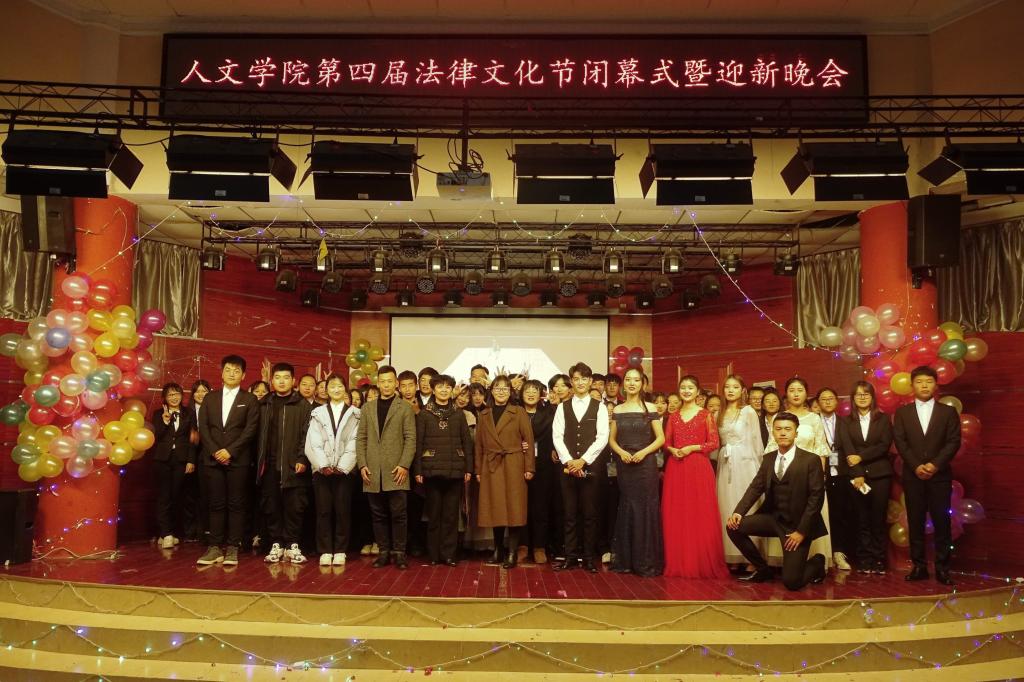 12月4日晚,人文学院第四届法律文化节闭幕式暨2019级迎新晚会在学术报告厅隆重举行。人文学院党总支书记杜士凤,人文学院副院长李晓东,法学系主任张晓云,辅导员曹珊珊、焦雪松出席晚会,18、19级200多名学生参加。晚会由耿世本、王晓雯、汤文轩和汤佳慧主持。