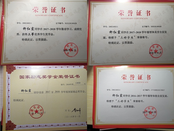 柳红霞,女,入党积极分子,建筑学院2016级风景园林专业学生。连续两年综合测评、智育评分班级第一,通过大学英语六级和计算机二级考试。曾获国家奖学金、国家励志奖学金、校特等奖学金、一等奖学金、三等奖学金,校“三好学生”、校“优秀共青团员”等荣誉。