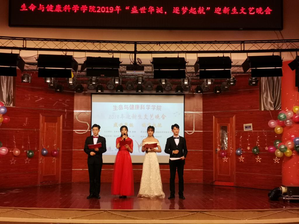 12月8日晚,生命与健康科学学院在学术报告厅举行2019年“盛世华诞,逐梦起航”迎新生文艺晚会。学院执行院长金光明、党总支书记张荣、党总支副书记周向群、党总支秘书彭丽萍、团委书记王传林、专职辅导员姜毅、刘国祥和全体19级新生参加本场晚会。晚会由陈皖豫、刘文静、耿世本、张佳杰主持。
