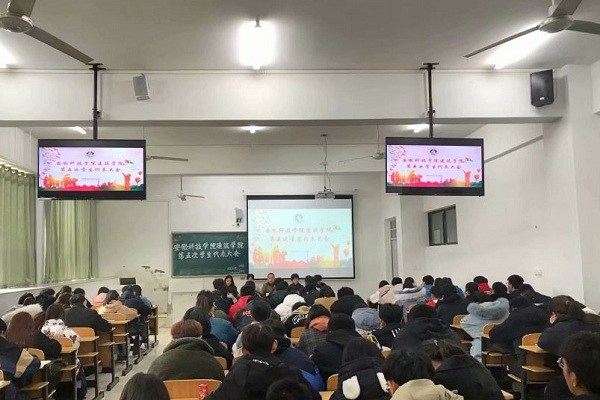12月16日,建筑学院在致知楼C108教室召开建筑学院第五次学生代表大会。建筑学院分团委书记耿广汉,辅导员沈德艳、阮怀思,第四届学生会主席梁朝中出席会议。参加此次会议的还有建筑学院团委委员、第四届第二任学生会干部以及46位学代表,会议由沈德艳主持。