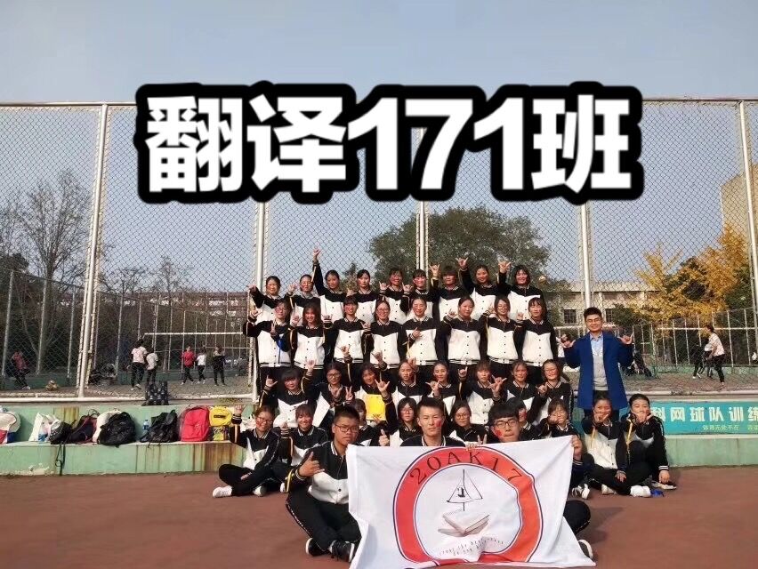 “力争上游,常抓不懈”。翻译171班在学院领导的关怀指导下,在班主任老师和班委的共同努力之下,建立起了良好的学风、班风、寝风,学风建设常抓不懈:创建了以“寝风带学风”和“一对一帮扶”、“宿舍导师责任制”的学风建设制度,共同的使命使每个同学都能发挥主人翁的精神,创造一个良好的学习环境,使同学们达到乐学、勤学、会学,早日形成班级长期有效的良好氛围,为建设优秀文明的班级而努力奋斗。