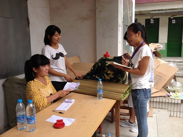 校车刚停稳,就清楚能听见有人在吆喝:“动科院”、“生科院”等。志愿者们一拥而上,迫不及待迎接自己学院的新生。他们不仅担任着迎新的任务,还会为新生做足“全套服务”:引导新生报道注册,缴纳学费,领取物品,去宿舍安顿及办理饭卡等。