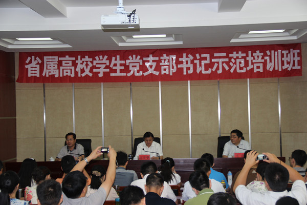 在理论教学中,省委教育工作委员会常务副书记高开华、安徽农业大学党委书记赵良庆、省委教育工作委员会组织干部处处长王忠、金寨县委党校副校长李业坤等专家分别为来自全省的115名学生党支部书记做了有关学生党支部书记素质提升、高校基层党组织建设、发展党员工作细则解读、金寨老区革命历史介绍等专题辅导报告。