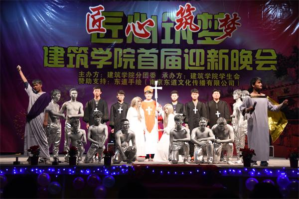 迎新暨迎新年晚会是建筑学院新生教育活动的重要内容之一,通过这次晚会给2015级新生进行了一次广泛的集体荣誉感、认同感和责任感教育,同时展示了学院学生积极向上、朝气蓬勃的精神风貌和多才多艺的艺术修养,彰显了学院强大的凝聚力。(特约通讯员:宗晓蕾)