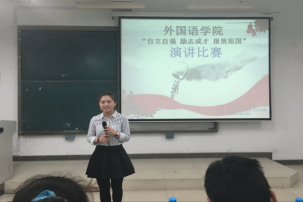 为激励当代大学生立志成才,把党和国家的关心关爱作为大学生成长成才的强大动力,4月6日晚,外国语学院在新知楼B102教室,举办“自立自强 励志成才 报效祖国”主题演讲比赛。校学生资助中心主任黄钦海,外国语学院副科级辅导员陈慧中,校学生会副主席邱盼盼,校演讲与口才协会会长赵加乐,校广播站优秀播音员刘思琦,外国语学院学生会主席汪鹏担任评委。外国语学院党总支秘书、分团委书记张海亮以及全院受资助同学共同观看比赛。