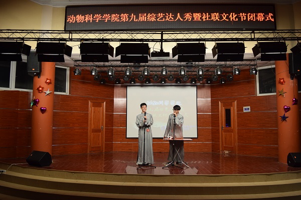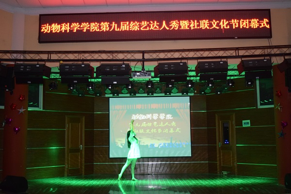 5月15日,由动物科学学院学生社联主办,综艺协会承办的动科院第九届综艺达人秀决赛暨动科院第九届社联文化节闭幕式在学术报告厅成功举行。参加此次活动嘉宾和评委有动科院辅导员李焱,校学生会副主席江伟,食品药品学院学生社联主席胡雅倩,动物科学学院学生社联主席马勇等。