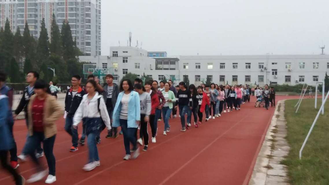 10月17日下午,食品药品学院在东区操场举行新学期 “徒步快走”活动启动仪式。学院副处级辅导员开金苗与2016级全体新生班级代表参与了启动仪式。