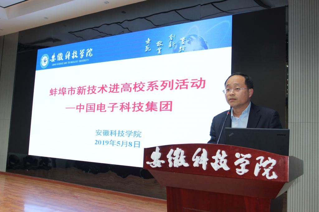 5月8日下午,由创新创业教育学院举办的“蚌埠新技术进高校”系列活动第三场专题报告会在校龙湖校区报告厅举行。本场报告会邀请了中国电子科技集团公司第41所(简称41所)科技项目部主任徐波作题为“军民融合技术--电子测试技术研究”专场报告。来自电气与电子工程学院的近两百名同学聆听报告,报告会由尚磊主持。