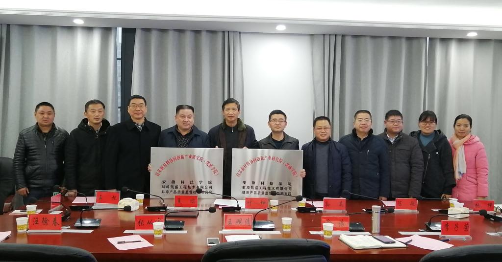 12月17日下午,安徽科技学院与蚌埠凯盛工程技术有限公司、蚌埠产品质量监督检验研究院合作共建硅基新材料协同创新产业研究院签字仪式在龙湖校区综合信息中心317会议室举行。蚌埠凯盛工程技术有限公司总经理叶坤、副总经理夏鹏,蚌埠产品质量监督检验研究院副院长孙葳、人力资源部部长陈敏等,安徽科技学院科研处副处长张从宇、化学与材料工程学院党政领导共同参加了签字仪式。会议由化学与材料工程学院党总支书记王明清主持。