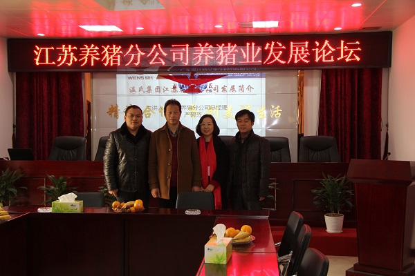 12月15-16日,温氏集团江苏养猪分公司养猪业发展论坛在江苏盱眙分公司总部召开,广东温氏食品集团有限公司总裁严居然、副总裁温志芬、江苏养猪分公司总经理严树芬及南京农业大学、扬州大学、江苏农牧科技职业学院、山东畜牧兽医职业学院等高校领导、专家参加了会议。动物科学学院党总支书记刘德义、副书记李忠应邀参会。论坛由温氏集团湖南湖北分公司总经理沈南波主持。