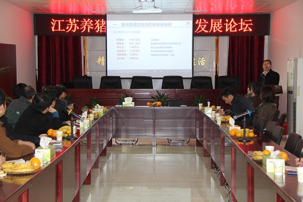 会上,江苏养猪分公司总经理严树芬作了《温氏集团江苏养猪分公司发展历程及未来发展规划》主题报告,回顾了公司发展历程,分析了公司面临的发展机遇和挑战以及养猪业的发展形势和趋势。与会专家就养猪业当前面临的困境和难题进行了热烈的讨论,从食品安全、成本控制、环保安全、疫病防控、品牌特色等方面提出了各自的观点和建议。
