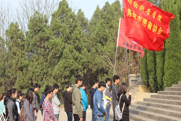 清明雨浥千年思念, 翠暖松寒万代永存。4月3日上午,学院青年志愿者和动物医学141班同学来到凤阳县烈士陵园,开展清明扫墓活动。