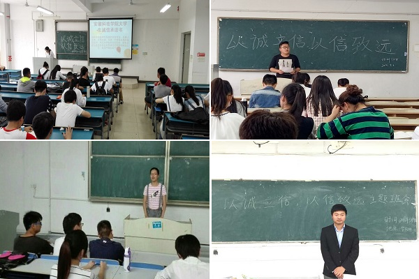 在此次系列活动中,各班级围绕“以诚立信,以信致远”主题,积极宣传国家助学金、生源地助学贷款、勤工助学等高校家庭经济困难学生资助政策,结合大学生的诚信考试、守信还贷,通过PPT演示,现场演讲等方式引导广大同学诚实填写国家助学金申报材料,做到客观真实、不伪造、不虚构;并通过案例分析,传递诚信是做人的宝贵财产,守信是为人的第一名片的价值理念,明确还款既是贷款同学应履行的义务,也是大学生诚信意识和社会责任感的体现,温馨警醒同学们及时还款、维护个人诚信,保持良好的信用记录。主题班会结束后各班级组织同学签署了诚信承诺书。