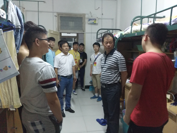 刘德义一行先后来到东园9号、1号男生公寓。他们走进新生宿舍,表达对新同学的欢迎,仔细询问同学们的基本情况,了解他们是否适应大学的新环境。刘德义一行嘱咐新生要做好迎接新生活的准备,重新规划新目标努力取得新成绩。他们关切地询问学生们生活的是否习惯并鼓励大家多多交流,并就新生提出的问题给予详细解答。走访活动期间,师生交流愉快,学院领导每到一个寝室,都得到了同学们的热烈欢迎和掌声。大家主动向学院领导汇报自己的情况,有说有笑,使每个新生感受到这里不仅是一个学习的地方,更是莘莘学子温暖的家。新生们表示一定会在军训期间磨炼意志,培养自身独立能力,提高个人素质,上好大学的第一课。